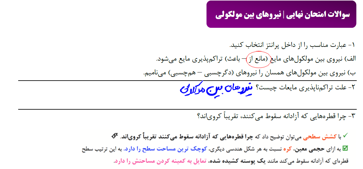 حل و توضیح سوالات امتحان نهایی نیروهای بین مولکولی ویدئو