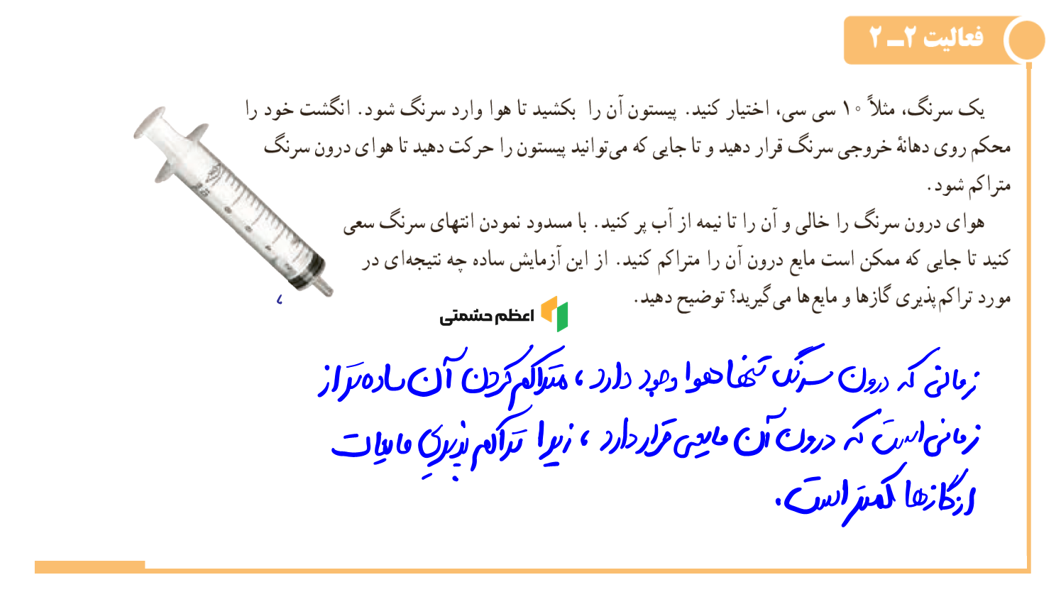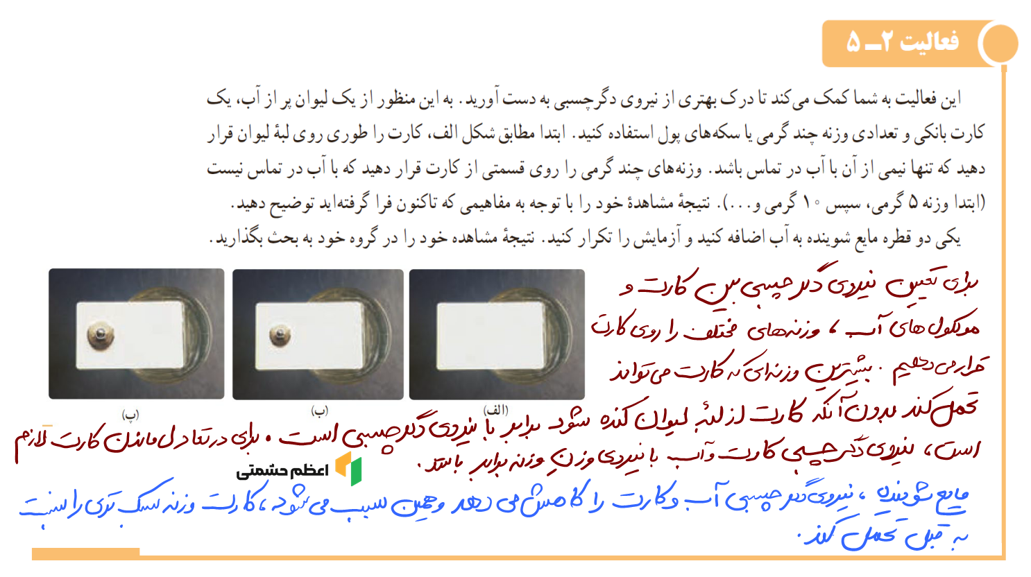 - دسترسی به پاسخ تمام مثال، پرسش، تمرین، فعالیت و پرسشهای آخر فصل دوم فیزیک دهم