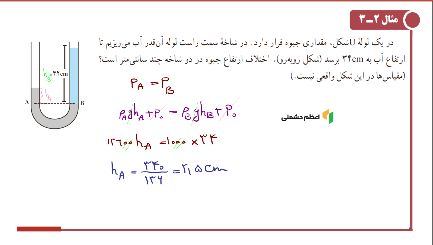 حل و توضیح سوال 8 کنکور سراسری فشار مایع در لولههای U شکل ویدئو
