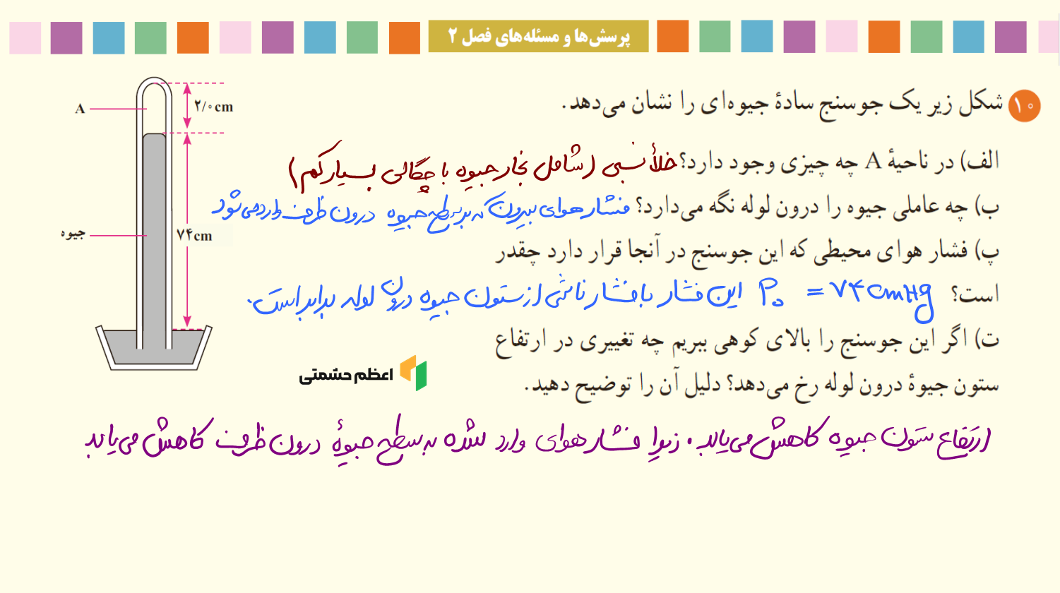 حل و توضیح سوالات 1 و 2 امتحان نهایی فشارسنج هوا (بارومتر) ویدئو