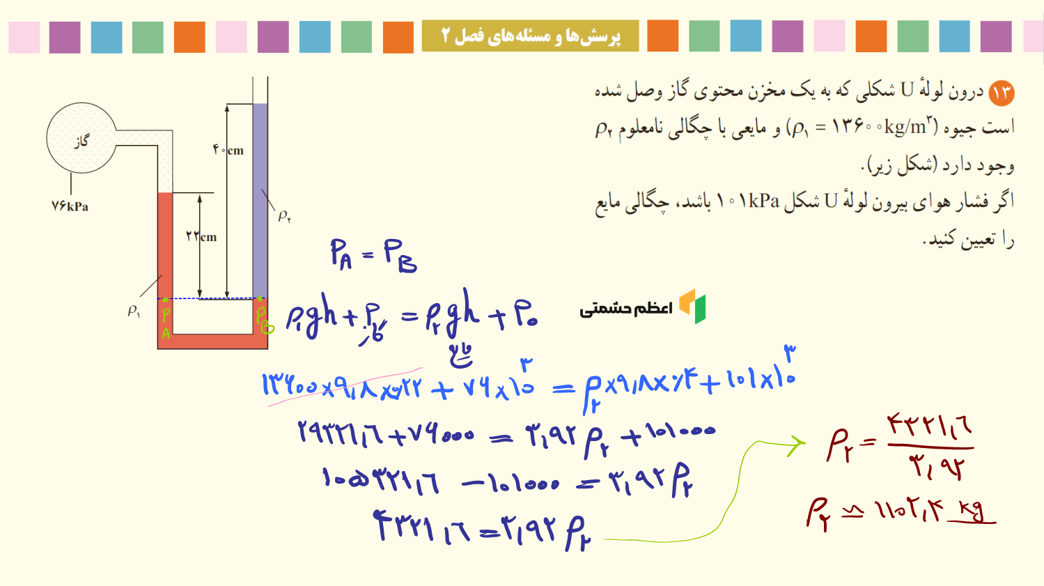 حل و توضیح سوال 9 کنکور سراسری فشار مایع در لولههای U شکل ویدئو