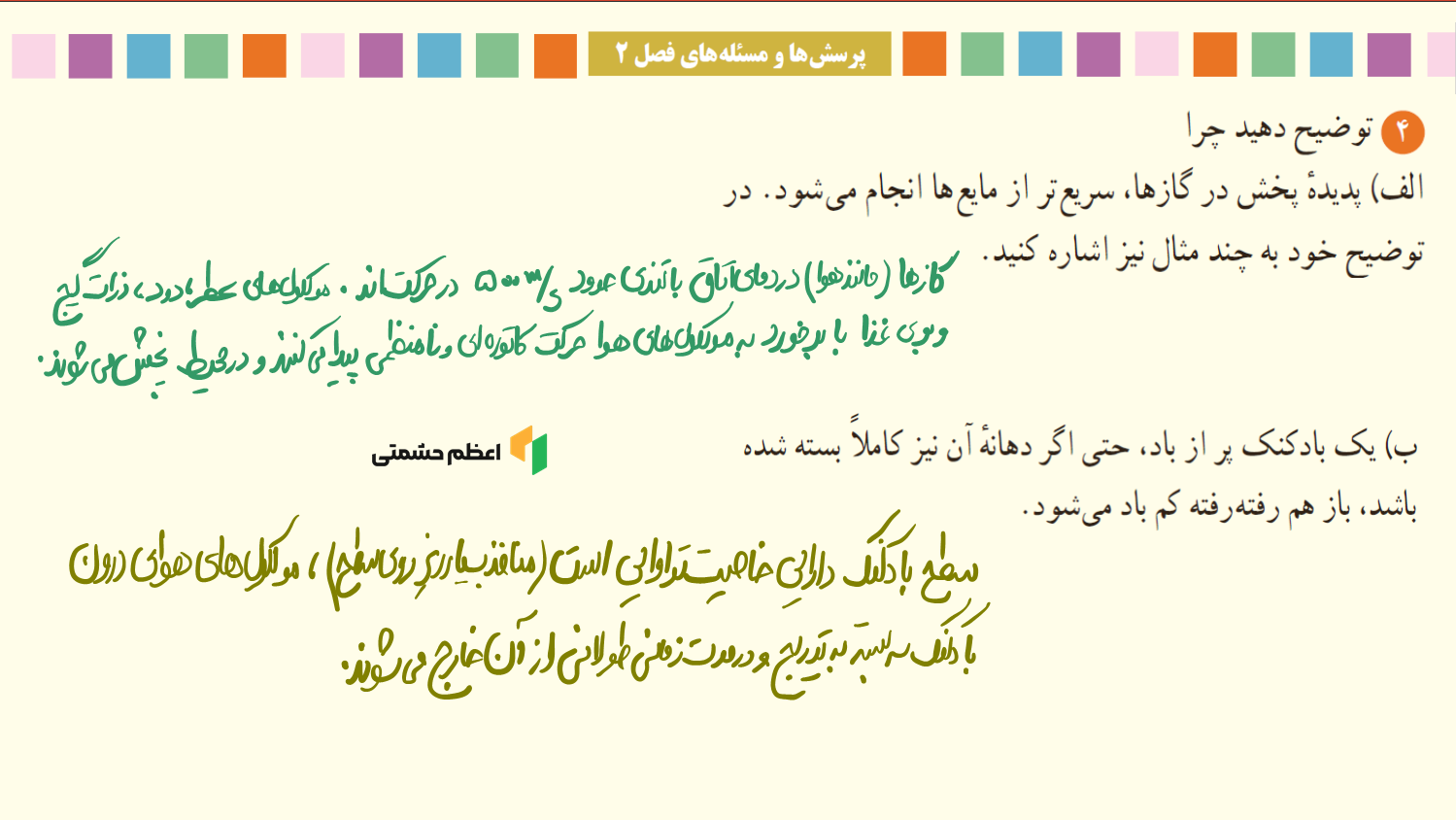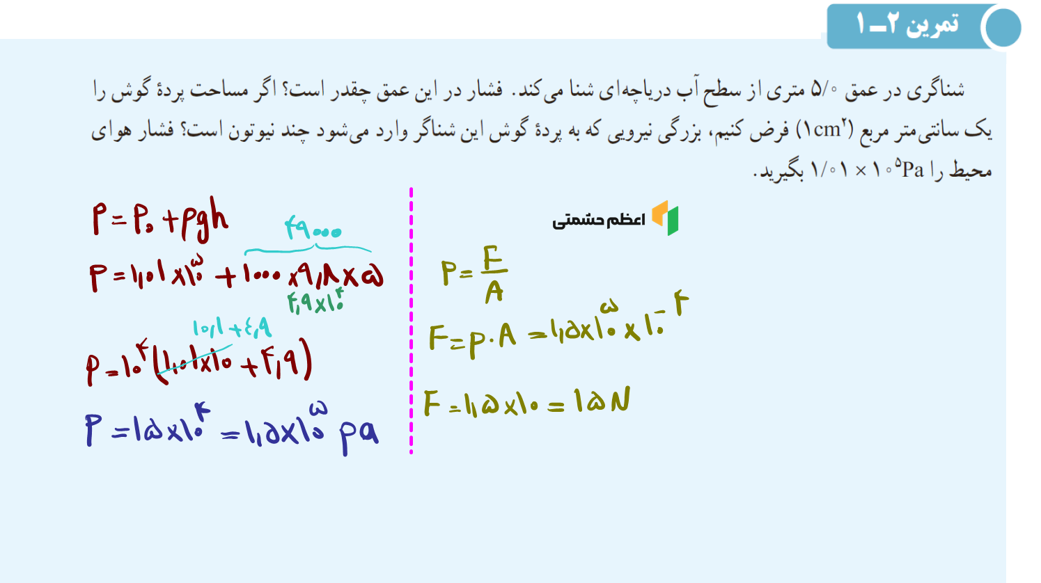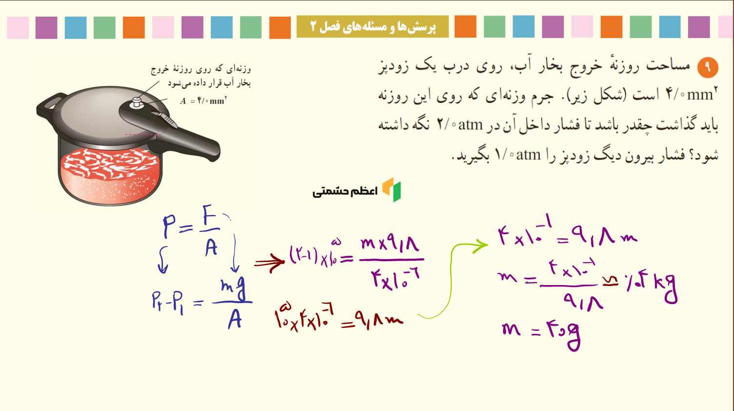 - پاسخنامه تشریحی تمام مثال، پرسش، تمرین، فعالیت، آزمایش، فنآوری و کاربرد، پرسشهای آخر فصل دوم فیزیک دهم ریاضی
